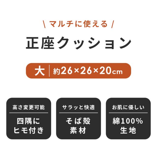 [ keyword | 正座クッション 大 26×26×20cm 日本製 そば殻 蕎麦 高さ調節 かため 市松模様 おしゃれ ごろ寝 あぐら 正座 そばがら ブラウン ブラック マルチ プレゼント ギフト むくみ 全そば 御中元 お中元 ]