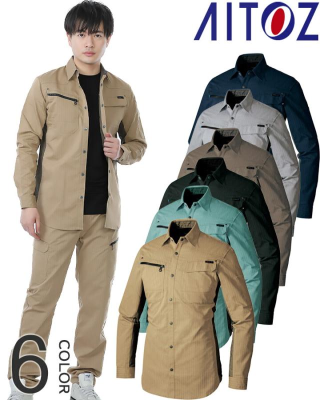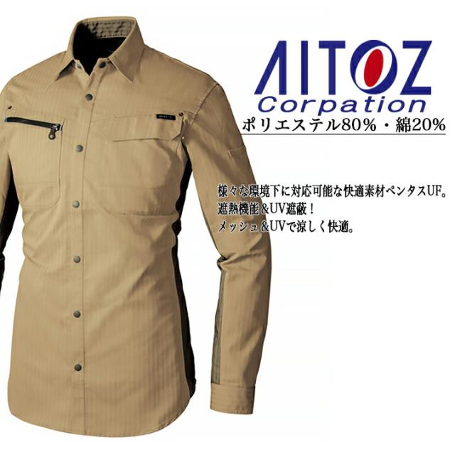 作業着 長袖シャツ(薄地) アイトス AZ-30635 遮熱 UVカット 【春夏】 作業服 作業着
