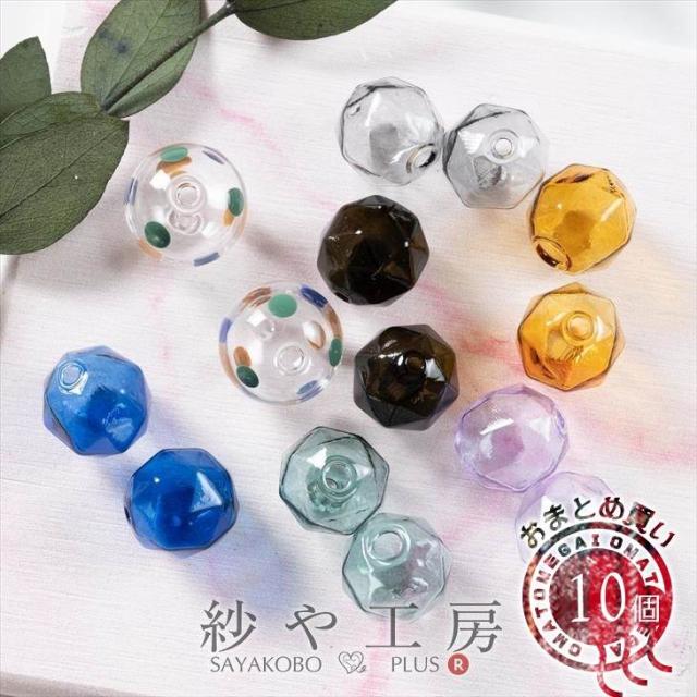 ビーズ ガラス ボール 【選べる7種】 14〜16mm 10個 10ヶ ガラスドーム 多面体 カット ラウンド ビーズパーツ 一つ穴 通し穴 アクセサリー パーツ パーツ ビーズパーツ 材料 問屋 ハンドメイド資材 ガラスビーズ スノードーム 両穴 さや工房