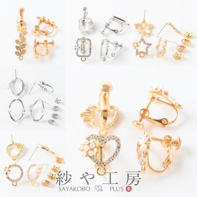 【内容詳細】ピアスパーツ イヤリングパーツ 変退色防止加工済み 【選べる8モチーフ/各4種】 ゴールド シルバー 2ペア カン付き
