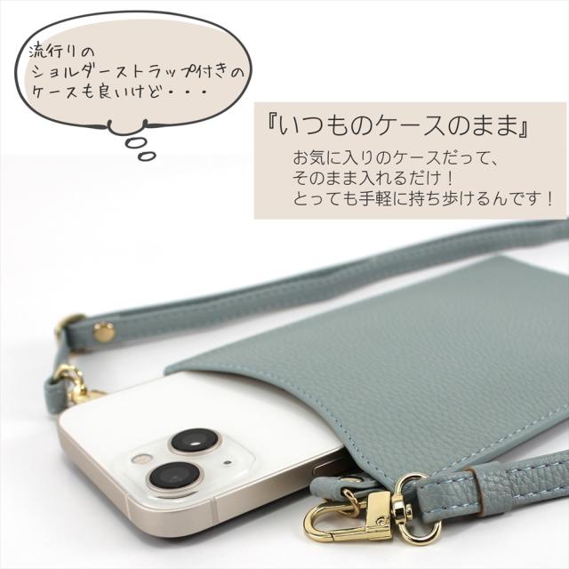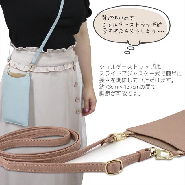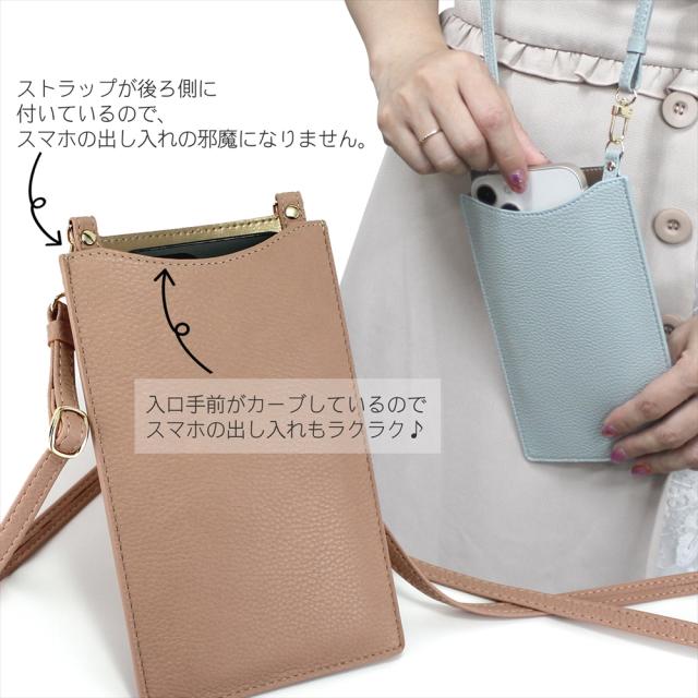斜めがけにすることで、スマホの出し入れもラクラク♪