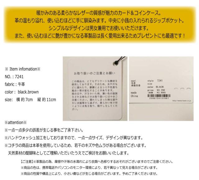 メール便発送 ホークカンパニー Hawk Company 7241 カード コインケース ジップ 男女兼用 レディース メンズ レザー 本革
