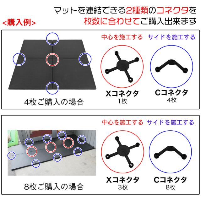 ※コネクタの必要数はゴムマットの使用する形によって変わります。お手数おかけしますが、コネクタの必要枚数を数えてからご購入をお願いしております。