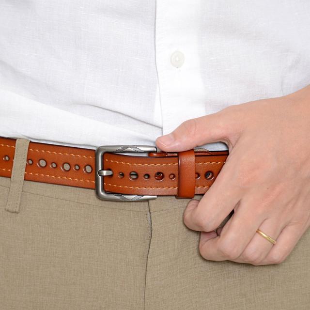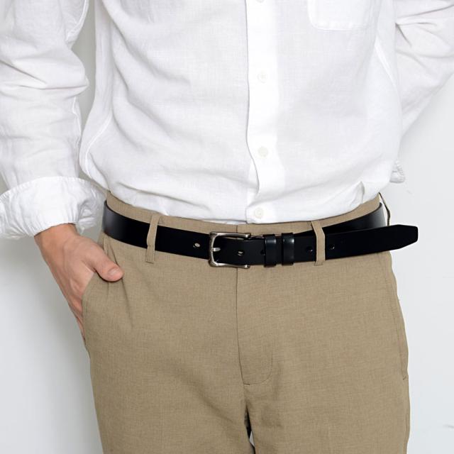 レザーの質感を存分に活かした本格ベルトはどんなボトムスとも合わせやすく、普段使いはもちろん、ビジネスシーンにも幅広く対応する万能アイテムです。