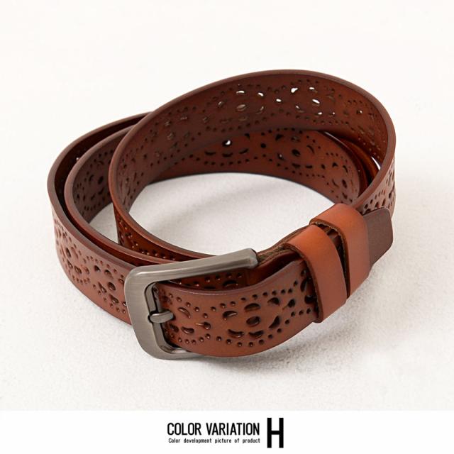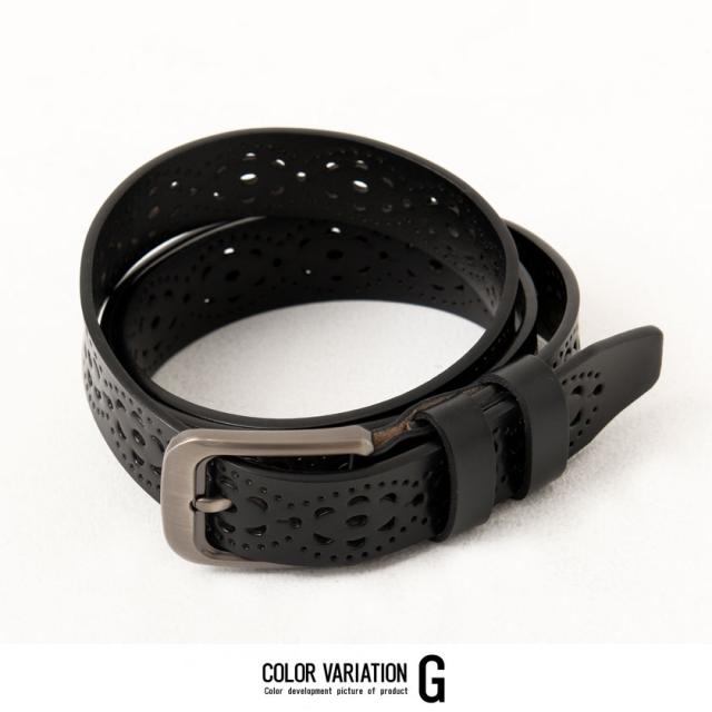 ベルト メンズ ブランド おしゃれ 小物 アクセサリー 本革 牛革 レザー 幾何学模様 エンボス加工 パンチング加工 シンプル ブラック ブラウン ホワイト レッド ダークブラウン 男性 紳士 ビジネス カジュアル フォーマル きれいめ プレゼント ギフト 即日発送 [SBGB22-01]