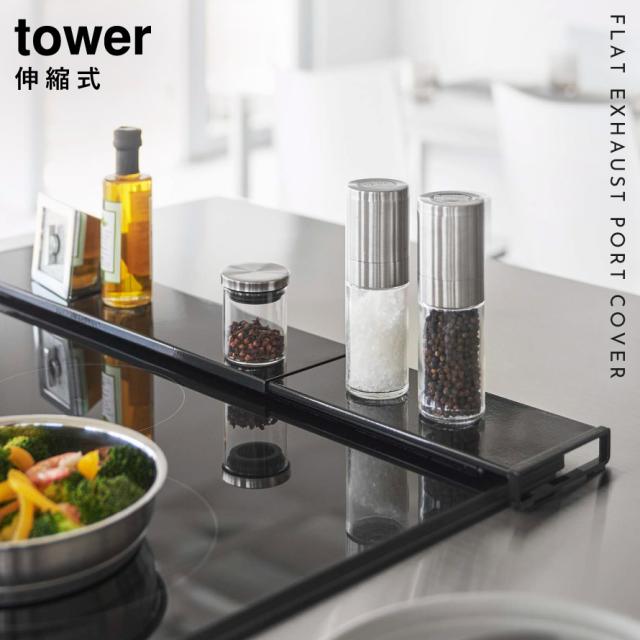 排気口カバー 伸縮 フラット 排気口カバー フラットタイプ コンロカバー タワー 黒 白 山崎実業 伸縮排気口カバー タワー フラットタイプ