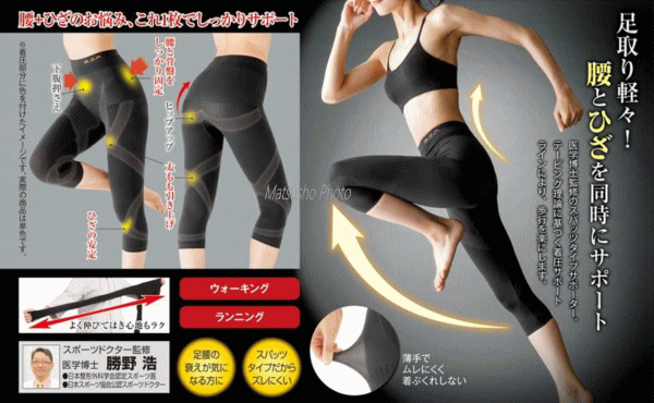 ![]() ![]() ![]() ![]() ![]() ![]() ![]() 歩きを楽にしたい方へ、新タイプのズレないサポーター登場! ☆膝・腰の動きを楽にしたい方 ☆ラクに歩いて疲れにくい ☆ひざのサポーターや腰のベルトのズレが気になる方 ☆着用中は骨盤を引き締めます ■スポーツドクター勝野浩監修のスパッツタイプのサポーター ■テーピング理論に基づく着圧サポートラインにより歩行を楽にします ■着用する事で腹圧を上げ腰に掛かる負担が減り骨盤を引き締めるので腰周りの筋肉を 安定させます ■膝のお皿を下からしっかり支え膝のグラつきを抑えるので歩行がスムーズになります ■大腿四頭筋をサポートするXラインが太ももを引き上げ足の上げ下げを軽くします ■非常に薄手なのでスリムなパンツをはいても目立ちません ■クロッチ部分は綿混素材で一枚ばきもOK |