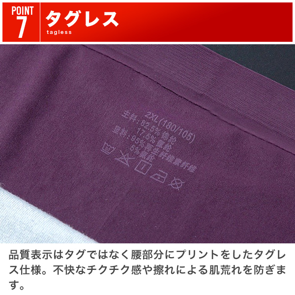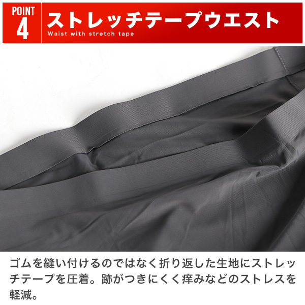 | 商品説明 | [ツルツル・サラサラ素材] 肌触りの良いなめらかな生地でやみつきになる快適な穿き心地。伸縮性・通気性も良くスポーツなど運動の際にも着用可能。 [抜群の通気性] 高い通気性で蒸れにくく快適な着用感を継続させます。 [抜群の伸縮性] 縦・横・斜め全方向に伸びる超伸縮素材で空札にぴったりフィット。スポーツなどの運動の際にも使える抜群の着用感です。 [ストレッチテープ仕様のウエスト] ゴムを縫い付けるのではなく折り返した生地にストレッチテープを圧着。跡がつきにくく痒みなどのストレスを軽減。 [裾・サイドシームレス] コストのかかるワンピースカットと圧着仕様で裾とサイドの縫い目を無くしたフラットな仕上がり。継ぎ目を感じず肌あたりのが良く馴染みやすい。 [自然にフィットする立体構造] 人間工学に基づいた立体構造で違和感なくフィット。過度な締め付けによるストレスや群れを軽減し快適な着用感。 [タグレス] 品質表示はタグではなく腰部分にプリントをしたタグレス仕様。不快なチクチク感や擦れによる肌荒れを防ぎます。 [軽量・薄手・コンパクト] 軽くて薄い生地のため畳みやすく、かさばらない。省スペースで収納できるだけでなく、旅行や出張などの外出時に荷物がコンパクトになるのもポイント。 |