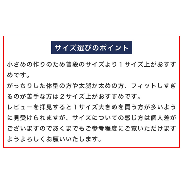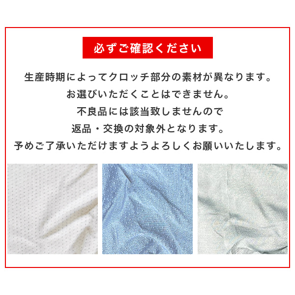 | 備考 | 前閉じ仕様。前開きではございません。 クロッチ部分の素材、品質表示のプリントカラーは生産時期やロットによって異なる場合があります。 掲載の画像はお使いのモニター環境により実際の色や素材感とは異なって見える場合がございます。 生産過程においてサイズに若干の誤差が生じる場合がございます。あらかじめご了承下さいませ。 またその他の返品・交換につきましては当社規定でご対応させて頂きます。 |