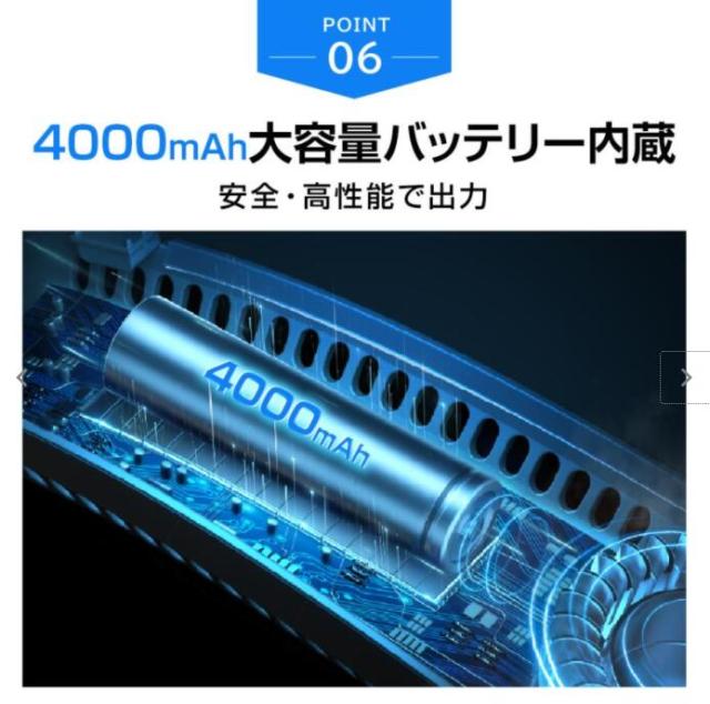●4000mAh大容量バッテリー・使用時間もっと長く