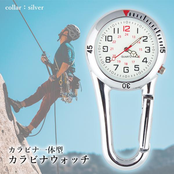 カラビナウォッチ 時計登山用 アウトドア バックパック用 カラビナ カラビナ時計 キャンプ シルバー (管理S) 送料無料