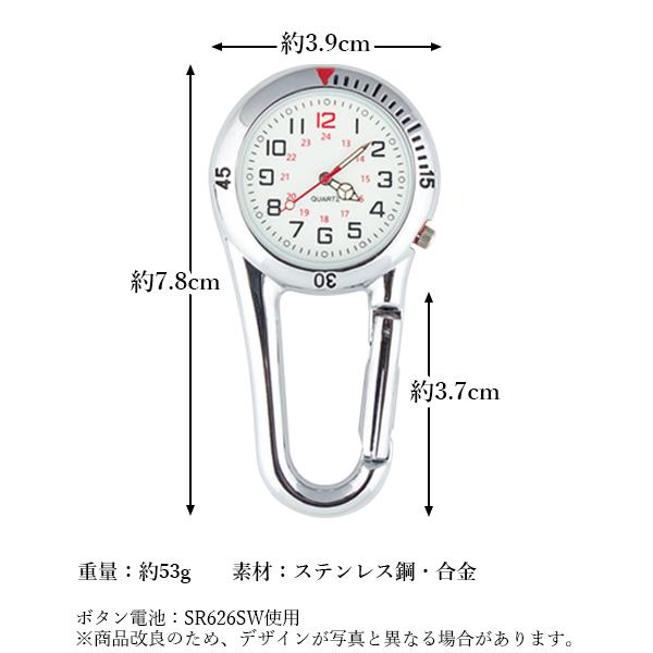 ・登山用や医師、看護師などにぴったりのカラビナウォッチです。