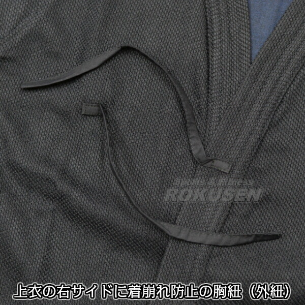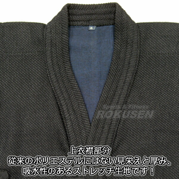 上衣は従来のポリエステル剣道着にはなかった見栄えと吸水性を持ち、十分に厚みのあるストレッチ生地を使用しています。