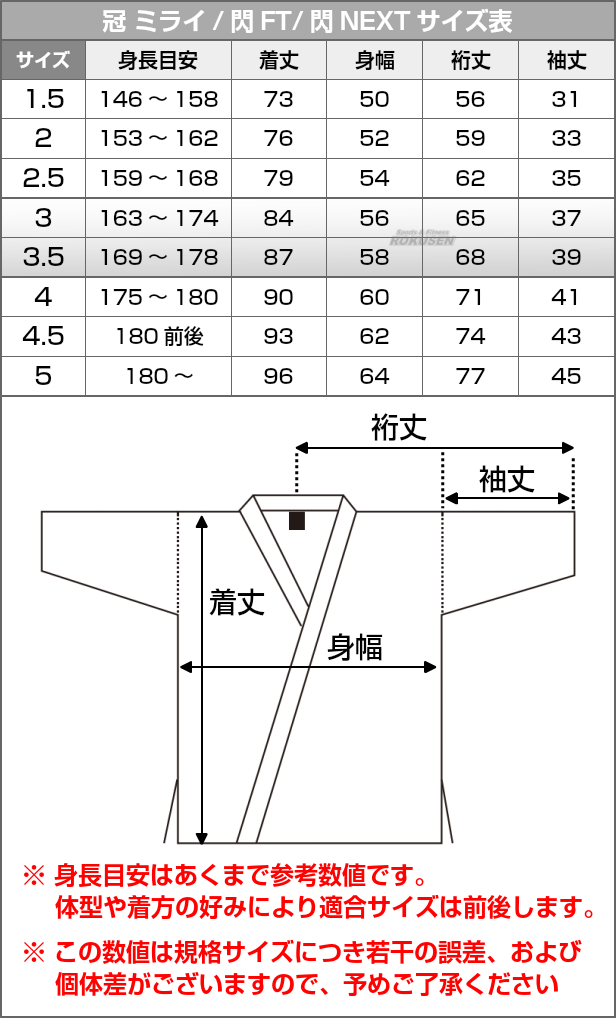 上衣サイズ:1.5号/2号/2.5号/3号/3.5号/4号/4.5号/5号