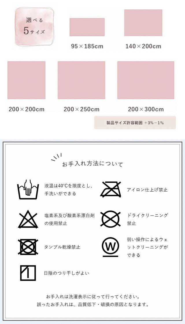 ・メーカー直送品のため、ご注文後のキャンセル・返品はお受けできません。 ・北海道、沖縄、離島地域も送料無料でお届けいたします。 ・画面上のカラーはご使用ブラウザやモニターの設定により、実物とは若干異なる場合がございます。 あらかじめご了承の上、ご注文をお願いいたします。 ・表記サイズとイメージ画像は異なる場合がございます。 ・ホットカーペット・床暖房でご使用の場合はホットカーペット本体・床暖房の注意事項をご確認ください。 ・火気の近くでのご使用はお避け下さい。 ・同シリーズでも色味が異なる場合がございます。 ・生産時期により同色でも若干色味が異なる場合がございます。 ・必ず洗濯表示を確認してお洗濯ください。 ・使い始めは遊び毛が出る可能性がございますので、ご使用前に掃除機でやさしく吸い取ってください。 ・滑らかな肌触りのため、転倒にご注意ください。 |