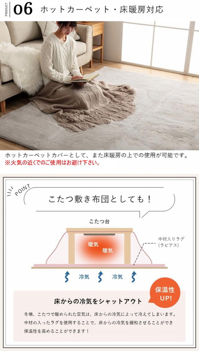洗えるラグ ラピアス 1畳 95×185cm 送料無料 フェイクファー 抗菌 防臭 手洗い可 ホットカーペット 滑り止め 床暖房
