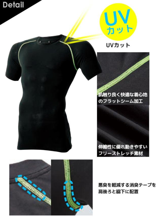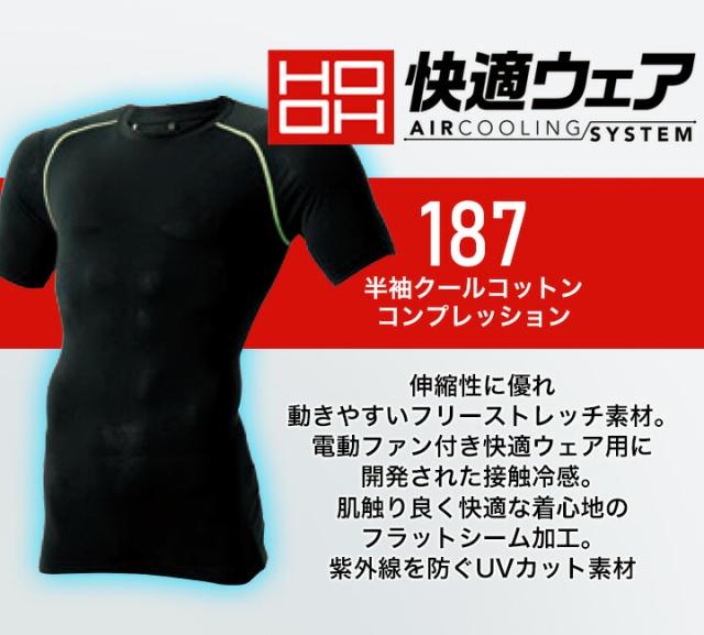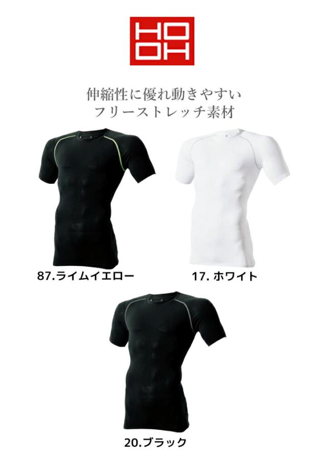 インナーシャツ メンズ 半袖 冷感 綿素材 クールコットン 夏用 HOOH 村上被服 187 コンプレッション 消臭 UVカット ストレッチ 作業着 作業服 スポーツ 鳳皇 村上被服【送料無料】【即日発送】