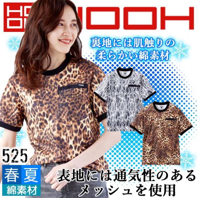 Tシャツ メンズ レディース 豹柄 ワークシャツ リンガーTシャツ 525 通気性 綿 メッシュ 豹柄 蛇柄 春夏 作業着 作業服 鳳皇 村上被服 HOOH
