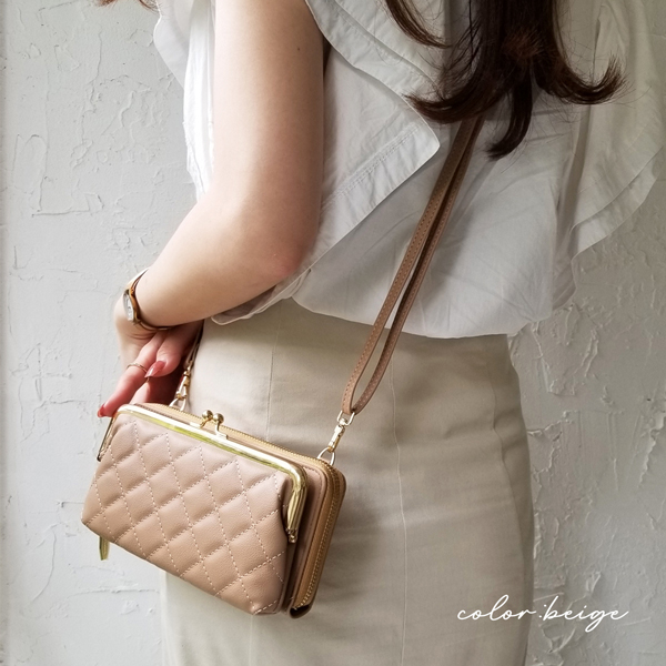 ショルダーポーチ 高見え 便利 カード スマホショルダー スマホポーチ レディース 財布 バッグ 横型 がま口 お財布ショルダー キルティング プレゼント ギフト 送料無料 ショルダーバック アクセサリー 薬 収納