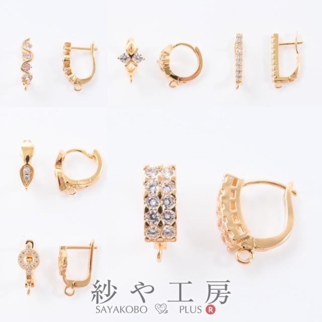 【内容詳細】ピアスパーツ ニッケルフリー 変退色防止加工済み いろいろモチーフ ストーン付き【選べる9種】 ゴールド フープピアス カン付