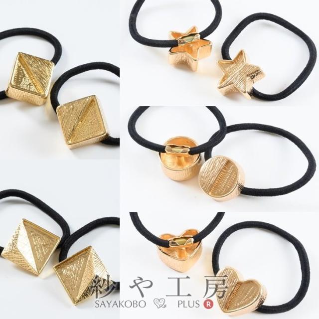 ヘアゴム 変退色防止加工 金属アレルギー対応 立体モチーフ 【選べる5種】 ゴールド 2個 3D ミール皿 リングゴム アクセサリーパーツ