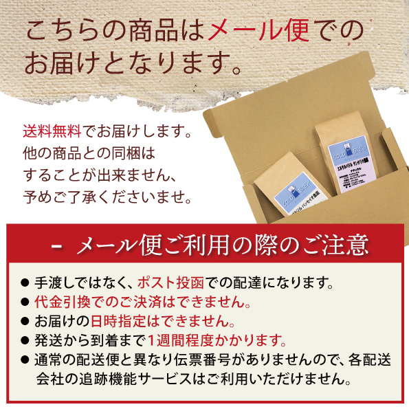 | そ の 他 | ●ご注文間違いによる商品交換、商品発送案内メール送信後の注文内容変更はお受け致しかねます。 ●セット内容変更はお受け致しかねます。 ●ご注文商品の長期お取り置きは致しかねます。ご要望欄よりご指定いただいた場合でも、ご注文順にてご対応とさせていただきます。 ●こちらの商品は贈り物用の包装は承っておりません。 ●コーヒーは嗜好品のため、お好みに合わない場合の返品・交換は承っておりませんので、商品ページにて十分ご確認のうえご注文ください。 ●不正購入と判断した場合にはご注文を取り消しさせて頂く可能性がございます。 ●注文後に豆粉の変更をご要望頂いても変更を致しかねます。ご理解の程お願い致します。 |