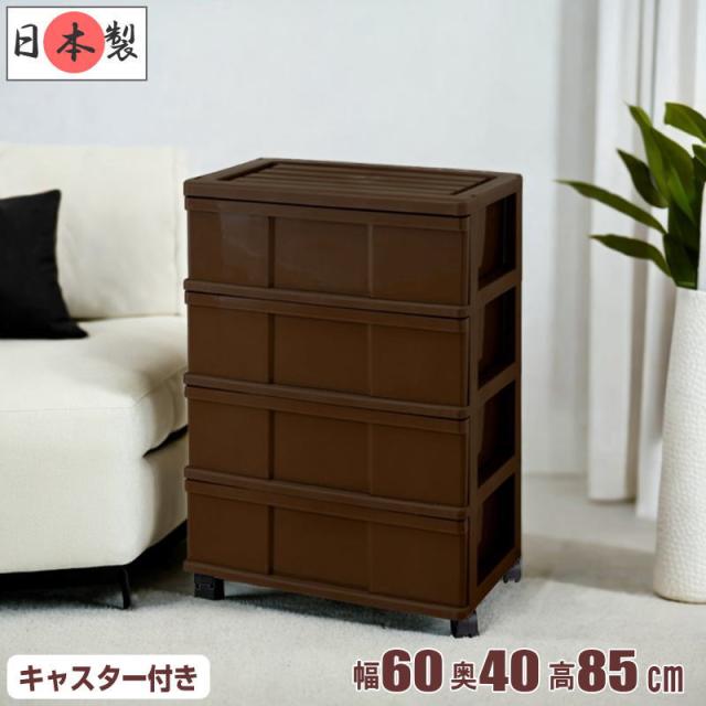 収納ケース 引き出し ワイド チェスト プラスチック 4段 幅60cm おしゃれ チョコレートブラウン 日本製 送料無料