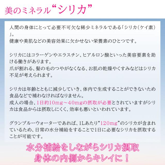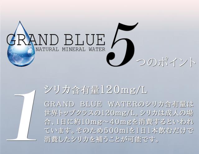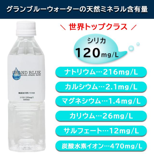 世界トップクラス!!シリカ量120mg/L GRAND BLUE WATER 500ml×24 1ケース 天然ミネラル温泉水 グランブルーウォーター シリカウォーター 軟水 温泉水 シリカ天然水 ナチュラルミネラルウォーター 無添加 飲む のむ シリカ水 ペットボトル 国産 珪素 ケイ素