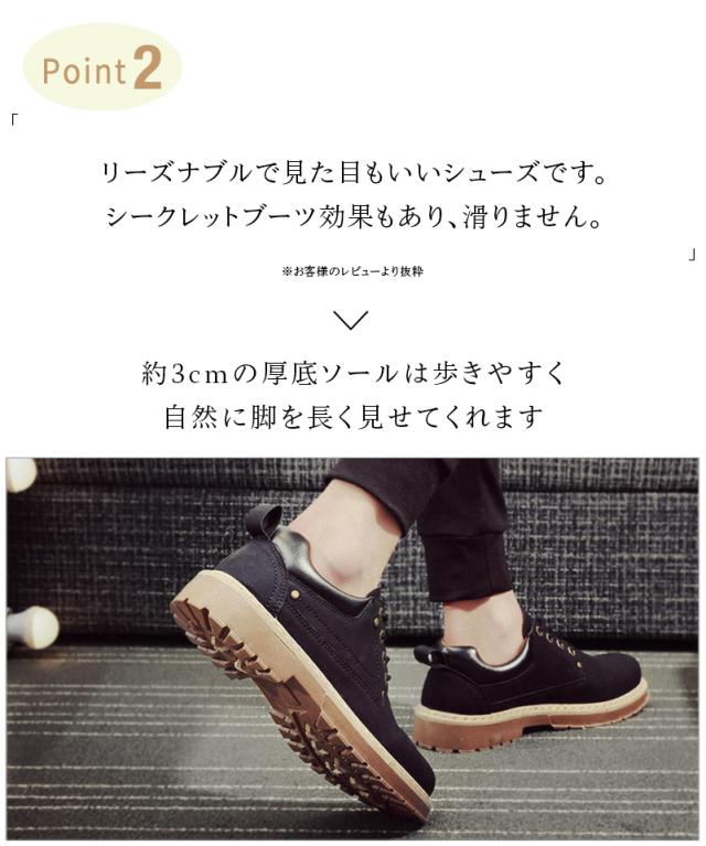 ・1番人気の定番ラウンドトゥ ・防滑ソールで悪路でも安心安全 ・身長が盛れる厚底ソール仕様 ・クッション性の高いインソール ・履き心地の良いフィット感 ・頑丈な作りで丈夫で長持ち ・軽からは長時間履いてもでも足が楽チン ・好みで選べる3色展開 ・ビジネスにもカジュアルにも幅広く対応 ・シンプルだから服を選ばず合わせやすい ・飽きのこないデザインで長く使える ・プレゼントやギフトにもおすすめ ・24.5cm〜27cmまでの幅広いサイズ設定 ・30日間の長期戦品保証付きでお得 ・気に入らなければ届いてからでも返品OK |