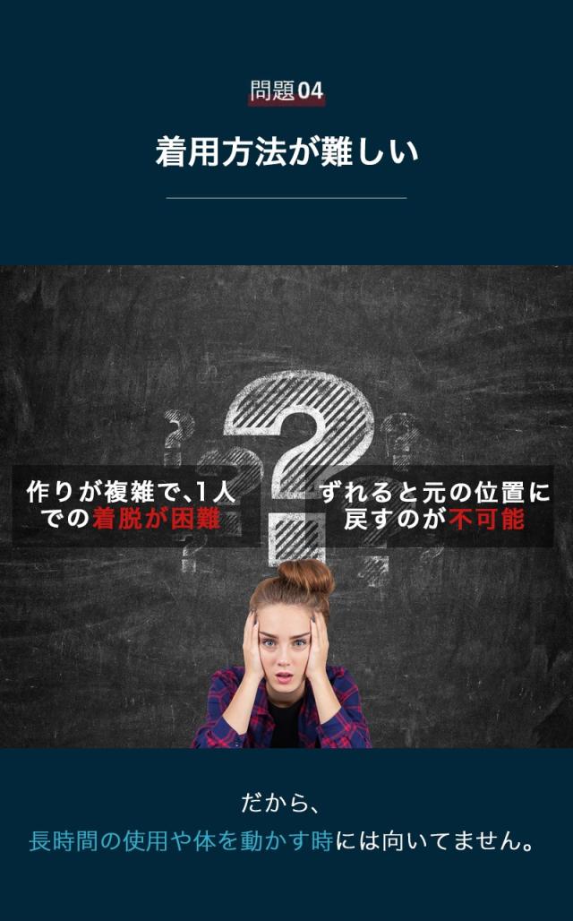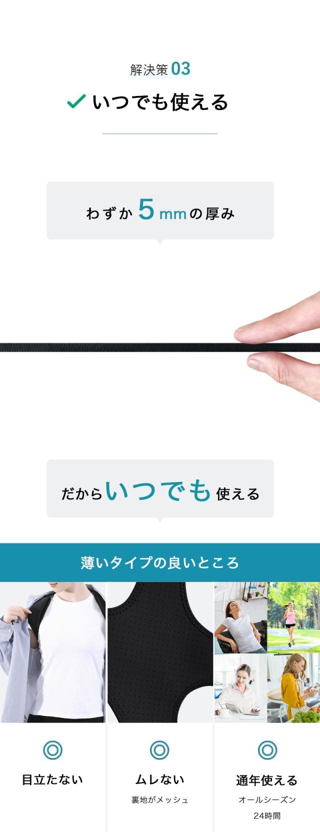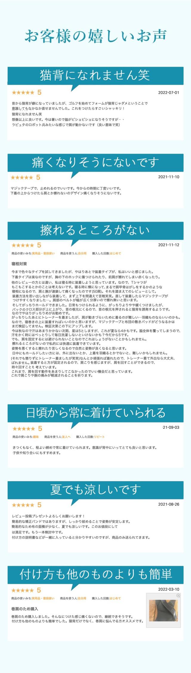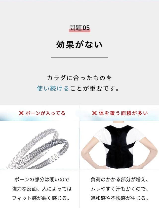 ・頑固な猫背をしっかり伸ばして矯正 ・肩こりや腰痛の軽減効果 ・通気性がいいからムレにくい ・長期間の使用も苦にならない ・使用後も手洗いできるから衛生的 ・着脱簡単でいつでも気軽に使用できる ・細部の縫製も丁寧だから丈夫で長持ち ・1年間の長期製品保証付き ・気に入らなければ返品OK |