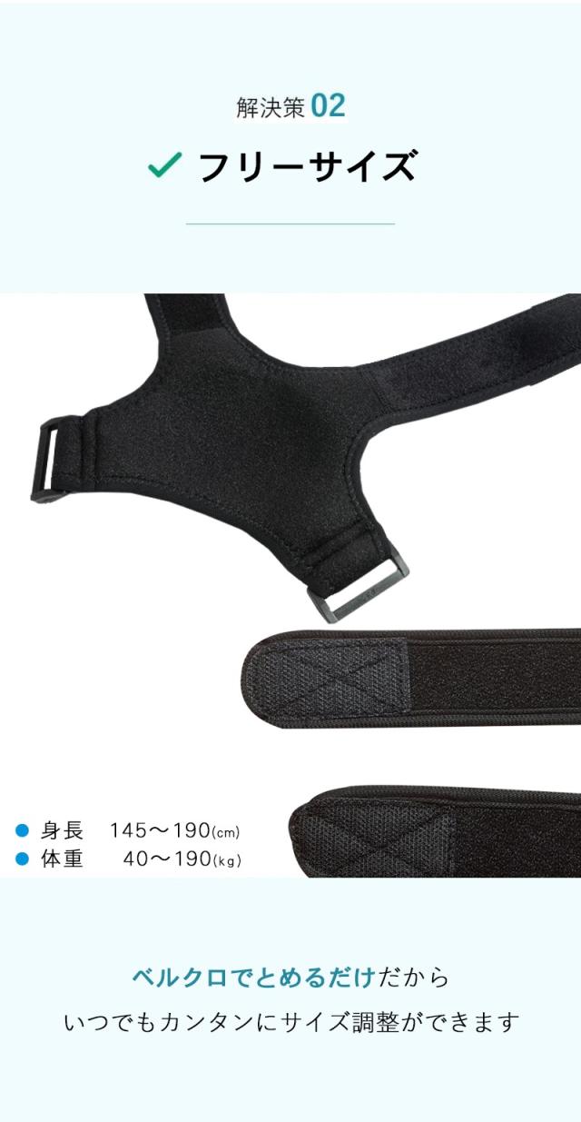 - 猫背が気になり、購入しました。軽めのつけ心地です。つけたまま、寝ましたが、息苦しさはないです。 矯正ほどの力はないかもしれませんが、普段使いには、楽だと思います。