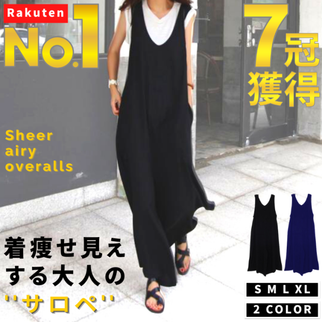 公式【1位★7冠★獲得】 着痩せ ワンピース サロペット パンツ レディース オールインワン 服 夏 きれいめ シアー 透け ワンピ サロペ 涼しい 薄手 体型カバー Vネック 大人 ワイド ロング 韓国 リゾート ぽっちゃり 可愛い おしゃれ オーバーオール サイズ ブラック