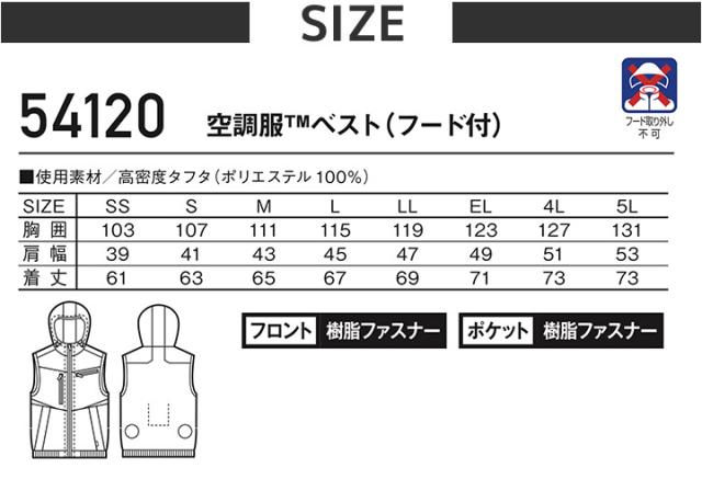 ジャウィン 空調服 ベスト(フード付き) 54120