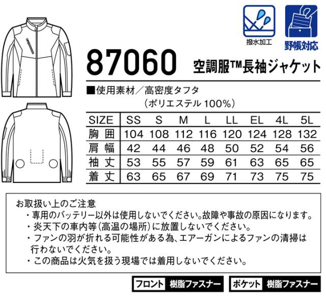 空調服 長袖 スポーツ 自重堂 長袖ジャケット 87060【服のみ】ブルゾン 熱中症対策 作業着 作業服【送料無料】