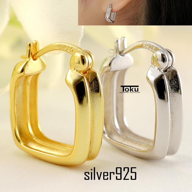 ピアス イヤリング フープピアス リングピアス スクエア シルバー925 両耳 メンズ レディース シルバー ゴールド 金属アレルギー 小さめ 小ぶり きれいめ 高見え シンプル プチプラ カジュアル つけっぱなし キャッチレス プレゼント ギフト