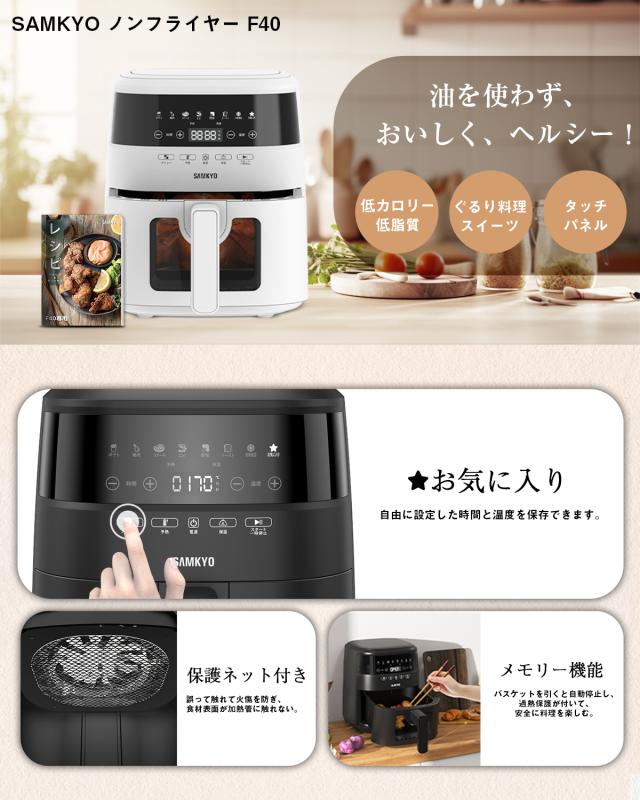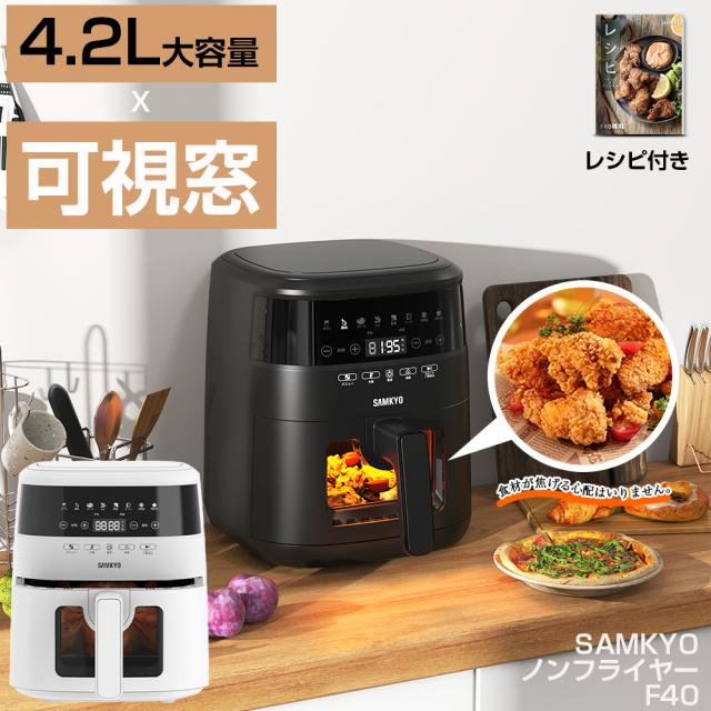 \年末家電SALE★9480円→7480円!/ノンフライヤー 電気フライヤー1台8役 大容量4.2L 熱風循環技術 エアフライヤー ノンオイルフライヤー 揚げ物 電子レシピ付き 温度調整 F40 新居 ギフト プレゼント