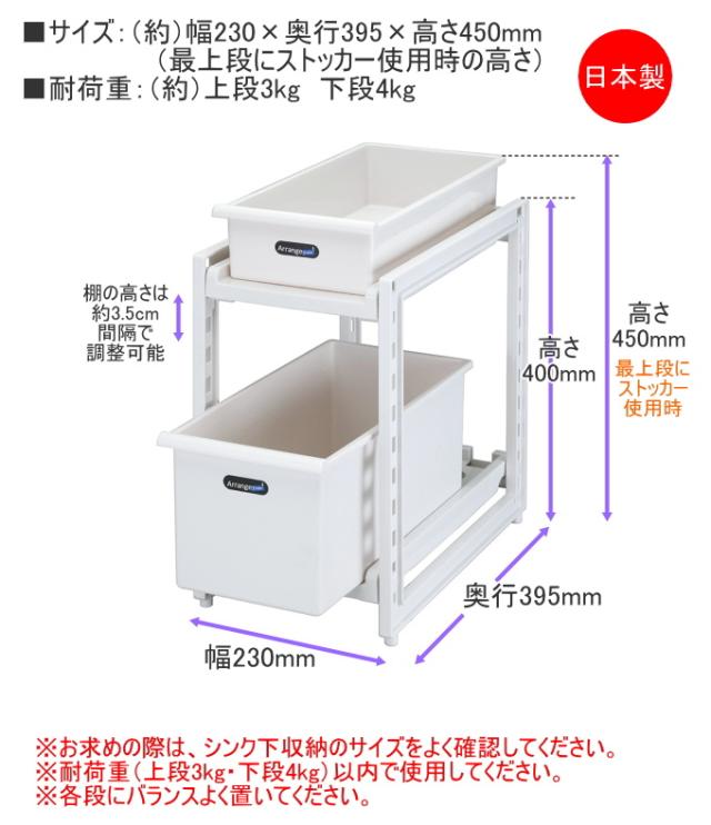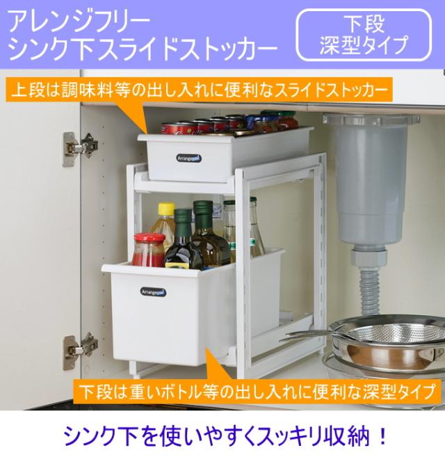 アレンジフリー シンク下スライドストッカー 2段 深型 H-5804 日本製 収納 シンク下 台所 キッチン キッチン収納 ストッカー ラック 組立式