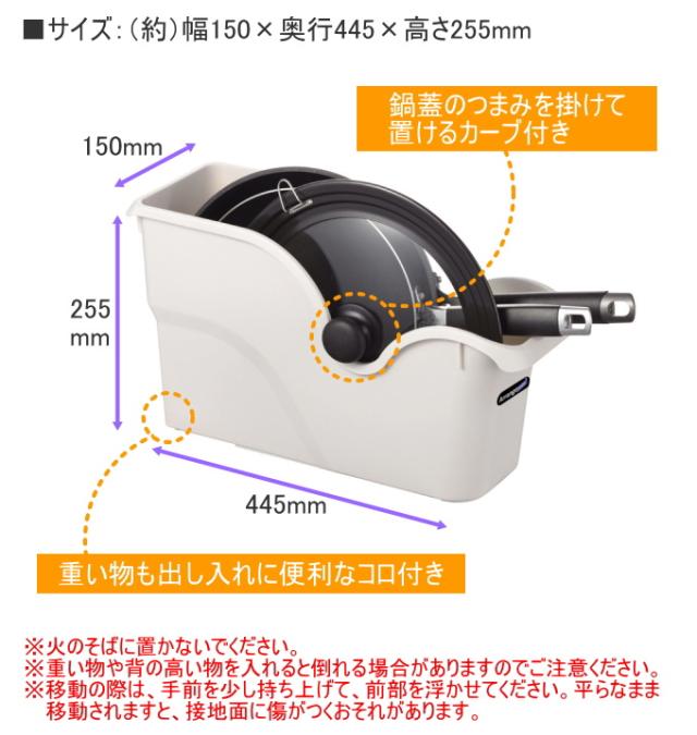 シンク下の奥まで無駄なく使用。 鍋蓋のつまみを掛けて置けるカーブ付き。 重い物も出し入れに便利なコロ付き。 ■その他のシンクまわり収納用品はこちら↓ シンクまわり収納用品はこちら |