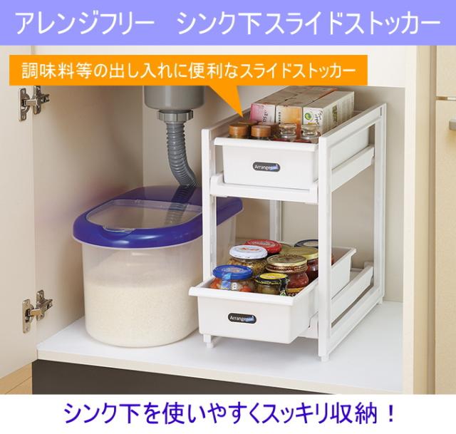 アレンジフリー シンク下スライドストッカー 2段 H-5808 日本製 収納 シンク下 台所 キッチン キッチン収納 ストッカー ラック 組立式