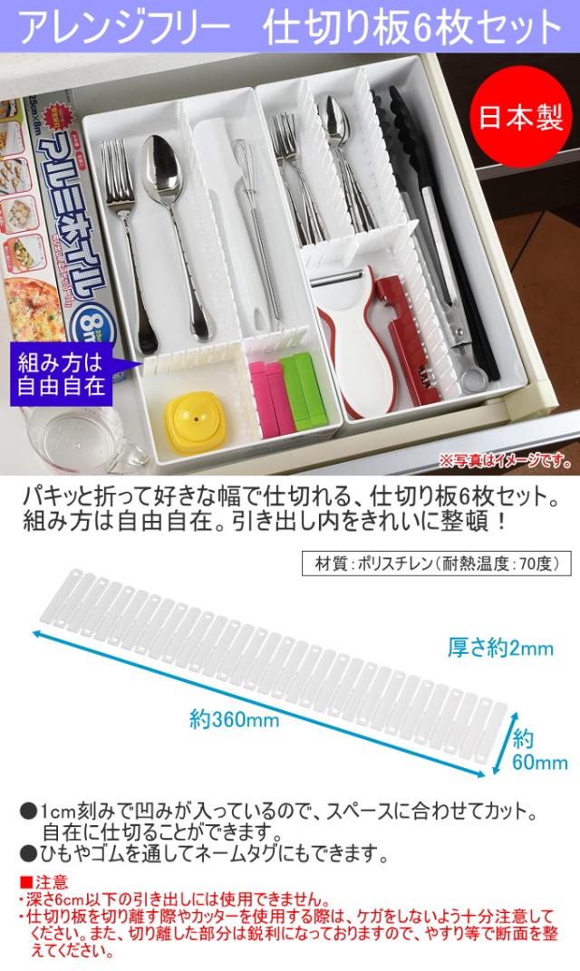 アレンジフリー 仕切り板 6枚セット HB-5989 日本製 収納 キッチン 台所 収納用品 キッチン収納 シンク周り 引き出し