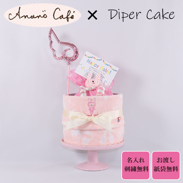 おむつケーキ 出産祝い アナノカフェ 1段 ピンク 名入れ刺繍 ダイパーケーキ 誕生日祝い ベビーシャワー