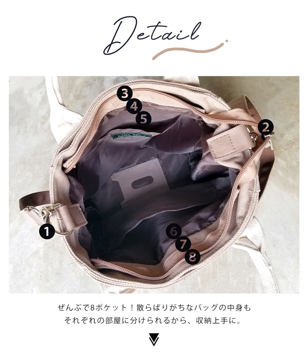 全部で8つのポケット!散らばりがちなバッグの中身もスッキリ収納。