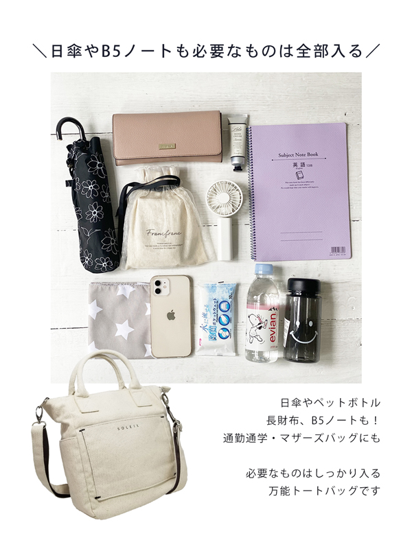 B5ノートや日傘、長財布…必要なものをしっかり収納!
