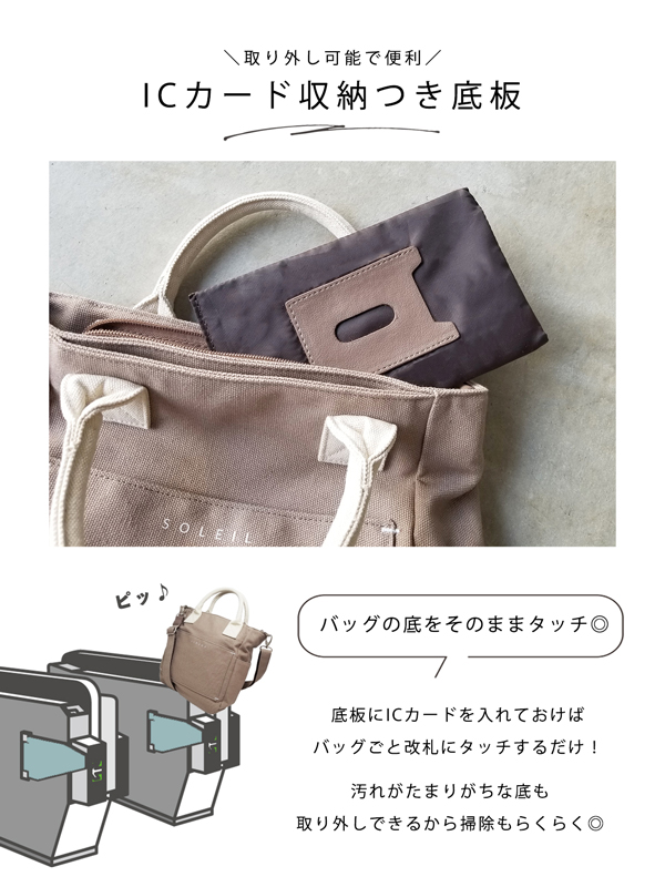バッグの底をそのままタッチで改札をラクラク通過できます。
