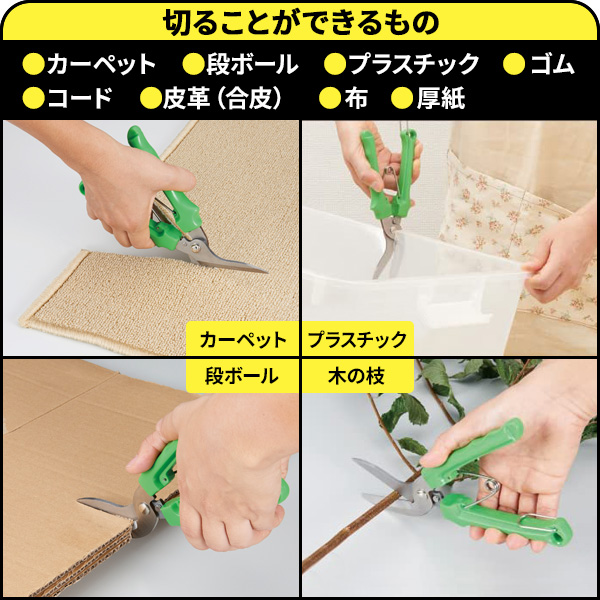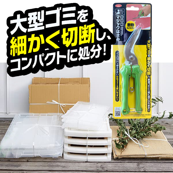 プラスチック製品や敷物など、大型のゴミも切断できる多目的なハサミ。
