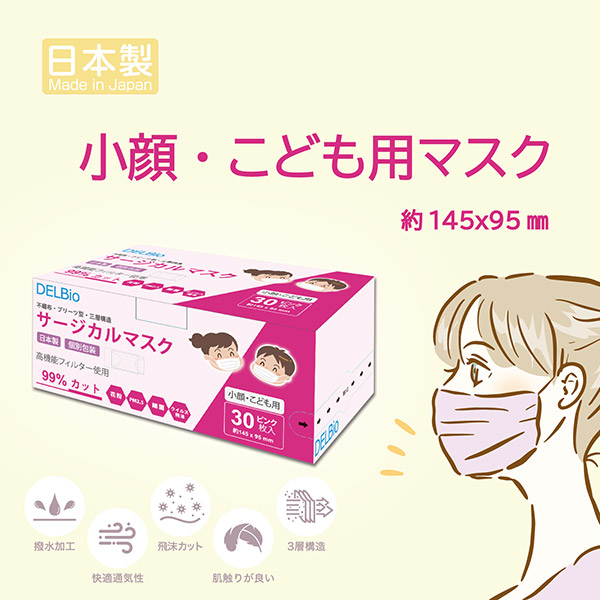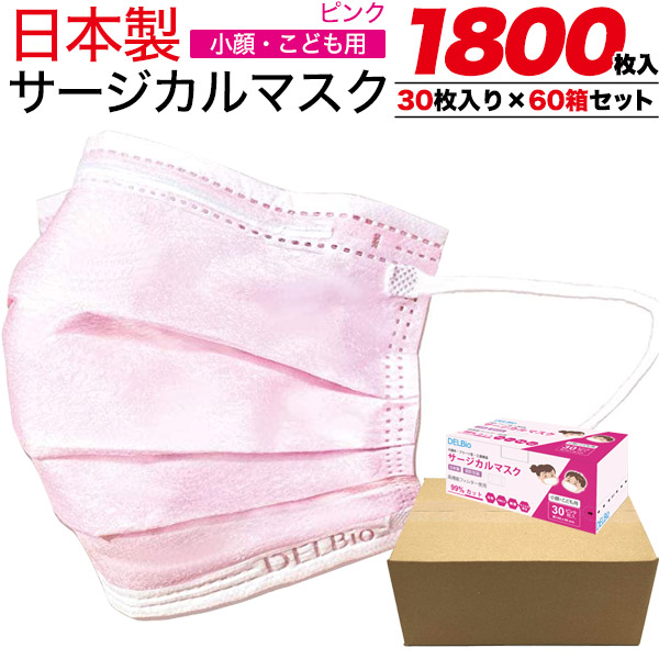 マスク 1800枚セット 小顔 こども用 カラーマスク ピンク 使い捨て ますく 日本製 サージカルマスク 不織布 3層構造 30枚 60箱 通学 学校 幼稚園 ウイルス対策 感染予防 衛生用品 通勤 通学 消耗品 飛沫対策 花粉 埃 乾燥 ノーズワイヤー アレルギー 保湿 衛生的
