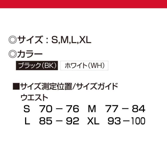 | サイズ | S(ウエスト70〜76cm) M(ウエスト77〜84cm) L(ウエスト85〜92cm) XL(ウエスト93〜100cm) |