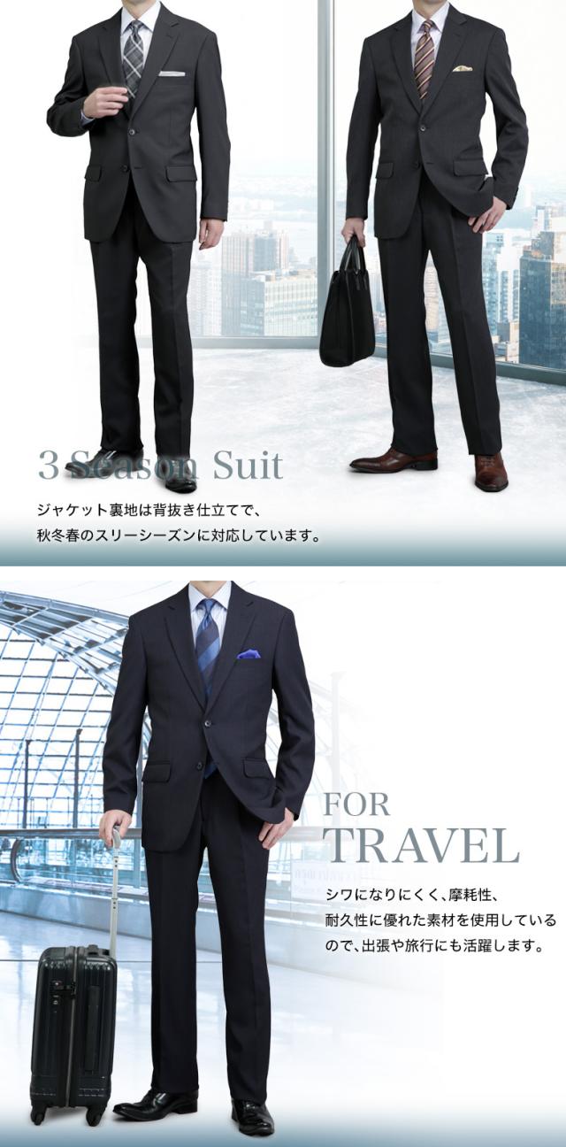 なめらかな手触り・シワや虫喰いに強い新素材を使用、繊維技術の進化を実感できるお手頃価格のスーツ。細身のスーツが苦手な方にお薦め、ゆとりのあるサイズ型紙を使用しています。上下ともにご家庭で水洗いでき、いつも清潔に保てます。ウエスト調節アジャスター(±6cm)が付いているので、 体型の変化にも対応できて安心です。