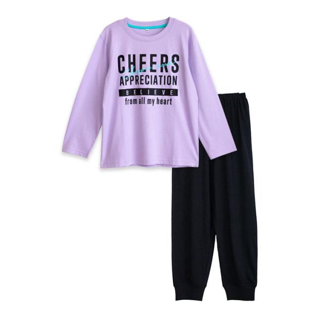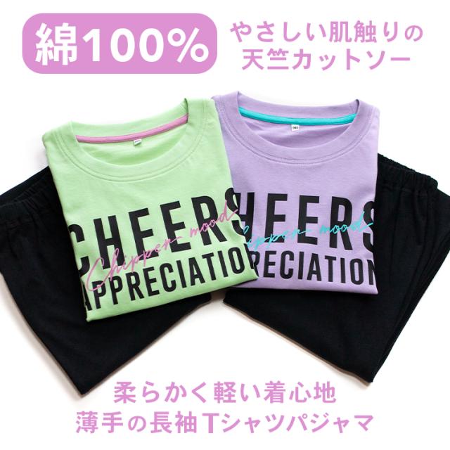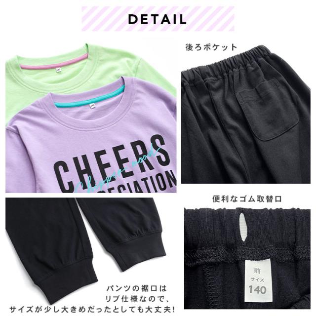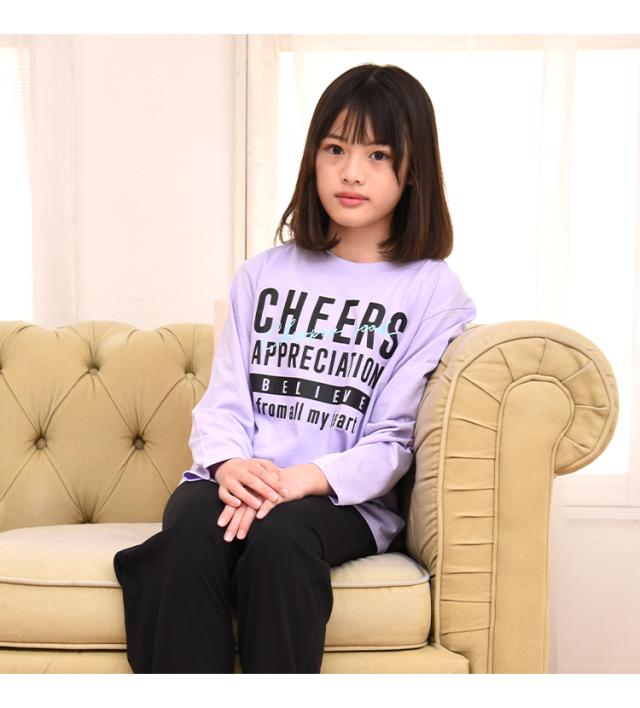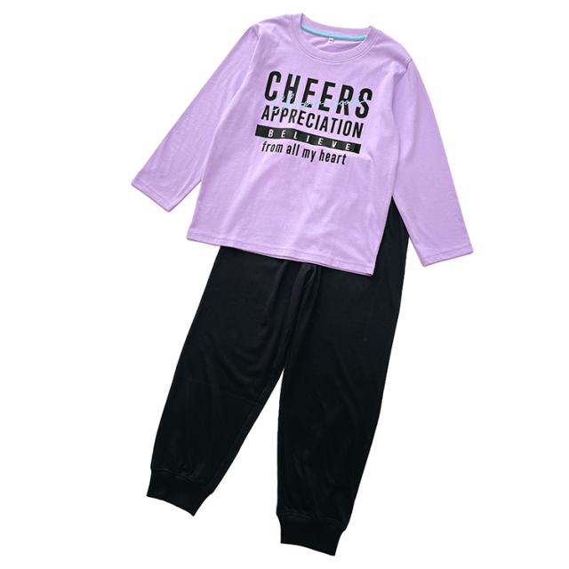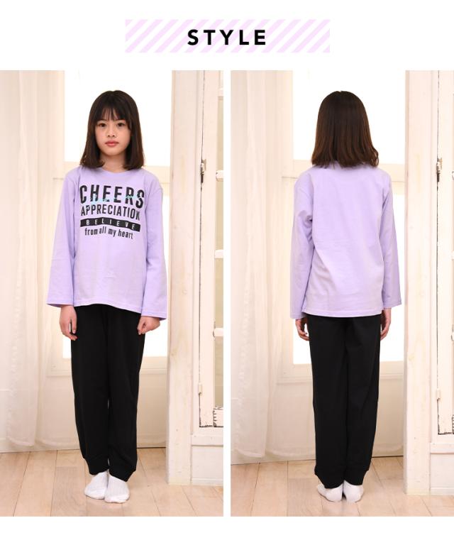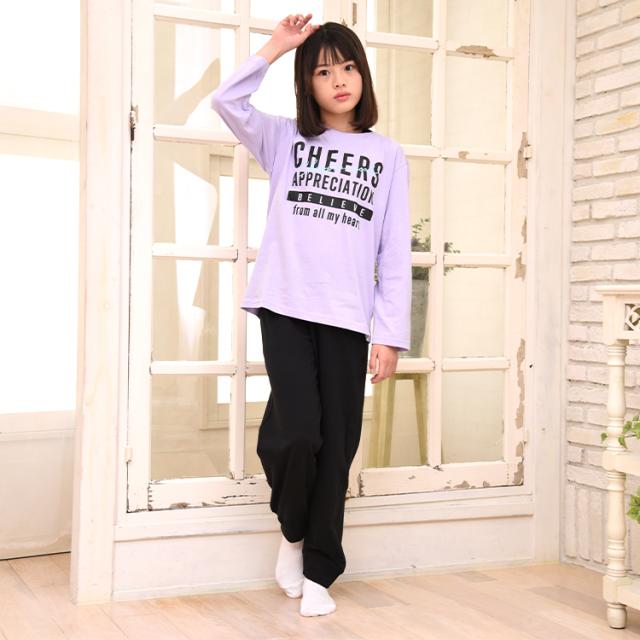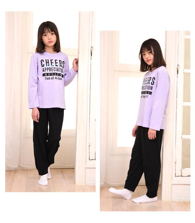 パジャマ キッズ 女の子 綿100% 長袖 春 夏 柔らかく軽い薄手の快適Tシャツ 上下セット ロゴプリント メロン パープル 120 130 140 150 160 子供 ガールズ ジュニア かわいい 部屋着 ルームウェア メール便なら 送料無料