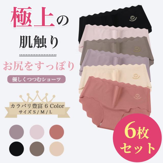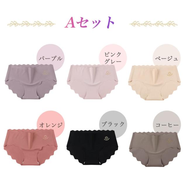 1枚250円! 6枚セット シームレス ショーツ レディース シームレスパンツ 無縫製 かわいい 浅履き スカラップ ラインが出ない くすみカラー インナー 春夏 オールシーズン サラサラ ノーマル ノーライン 無地 通気性 伸縮性